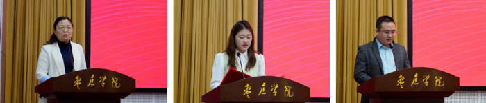 马克思主义学院党委副书记、院长董嫱嫱教授代表学校教师寄语新生。2023年度优秀学生学前教育专业宋诗雨、2024级新生代表汉语言文学专业张成龙作了发言。