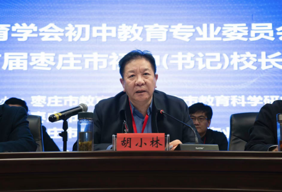胡小林会长在讲话中说,初中教育专业委员会的成立和首届枣庄市初中(书记)校长大会举行,是枣庄市教育领域的一件盛事,也是我们在追求优质教育道路上的一个重要里程碑。他向初中教育专业委员会第一届理事会提出三点要求:一要把专业委员会打造成初中教育的研究高地;二要把专业委员会构建成初中教育的交流平台;三要把专业委员会塑造成为初中教师专业成长的助力器。他希望全市初中教育工作者,要坚守教育初心,担当育人使命;要不断学习,提升自身素养;要勇于创新,积极探索教育教学改革;要加强合作,共同推动初中教育发展。他表示相信在全体会员的共同努力下,初中教育专业委员会一定能够发挥应有的作用,推动枣庄市初中教育事业不断向前发展。